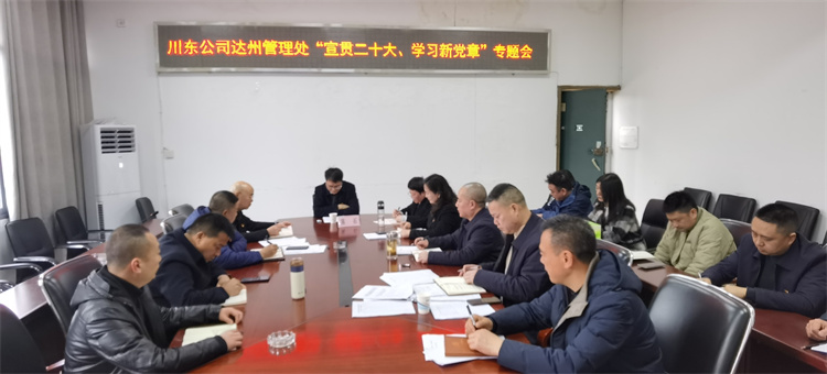 為深入推進領(lǐng)導(dǎo)班子成員聯(lián)系點工作聯(lián)系制度常態(tài)化,貫徹落實年度黨建工作部署,2月28日,川東公司副總經(jīng)理陳石到達州管理處黨總支聯(lián)系點以“宣貫二十大、學(xué)習(xí)新黨章”為主題開展宣講活動,為全體黨員講授黨課。