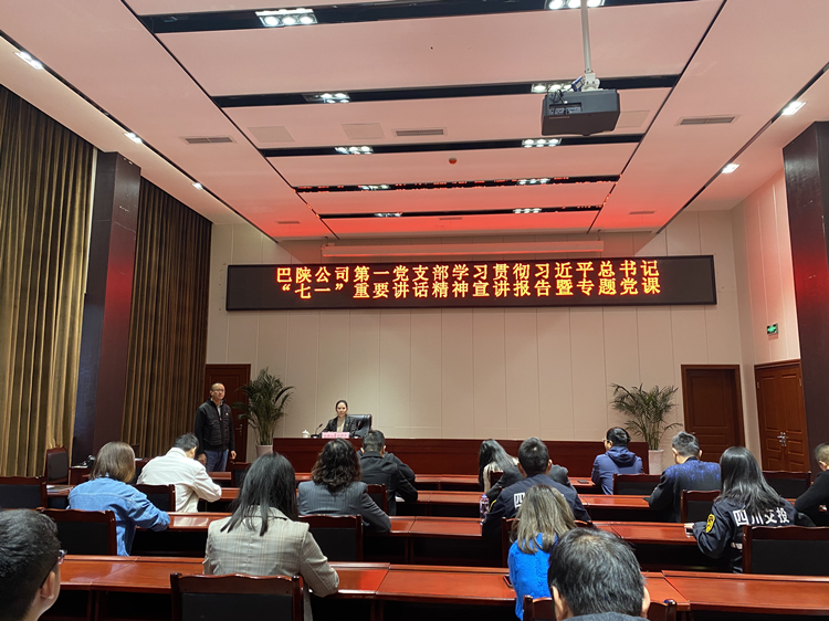 按照巴陜公司黨委統(tǒng)一部署。10月19日,巴陜公司副總經(jīng)理白鐘華同志在第一黨支部及分管領(lǐng)域開展了學(xué)習(xí)貫徹習(xí)近平總書記“七一”重要講話精神宣講報告暨專題黨課。巴陜公司第一黨支部全體黨員及綜合辦公室、經(jīng)營開發(fā)部、財務(wù)管理部人員參加宣講報告暨專題黨課。