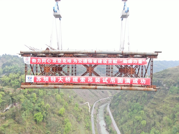 3月28日,樂(lè)西高速蘇壩特大橋施工現(xiàn)場(chǎng),纜索吊裝系統(tǒng)試吊圓滿(mǎn)完成,為后續(xù)纜索吊裝系統(tǒng)投入使用邁出了堅(jiān)實(shí)的一步,對(duì)蘇壩特大橋勁性骨架節(jié)段安裝有序施工提供了有效保障。