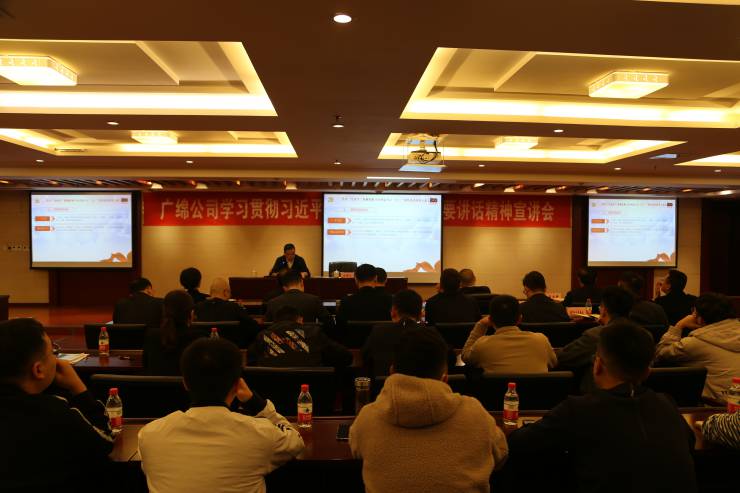 為深入學(xué)習(xí)貫徹習(xí)近平總書記“七一”重要講話精神,推動黨史學(xué)習(xí)教育走深走實。10月28日,廣綿公司舉辦學(xué)習(xí)貫徹習(xí)近平總書記“七一”重要講話精神宣講會。廣綿公司黨委書記、董事長、總經(jīng)理董勝勇作了專題宣講,廣綿公司領(lǐng)導(dǎo)班子成員、全體黨員干部和職工等近50人參加會議。