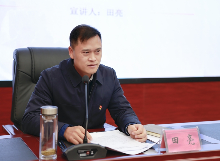 專題黨課上,田亮詳細闡述了黨的二十大會議主題、主要成果和重大意義,對黨的二十大報告的十五個部分內(nèi)容進行了全面系統(tǒng)解讀,就全面理解把握黨的二十大報告從八個方面進行了系統(tǒng)闡述。
